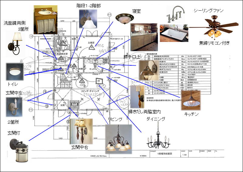 新築やリフォームの場合は、図面をお持ち(お送り)いただければ、ご希望をお伺いした上で、お客様に代わって、下のような「おすすめベースプラン」を作成させていただきます。照明器具のご購入を検討される場合、プラン作成は無料で行っています。お気軽に、お問い合わせください。